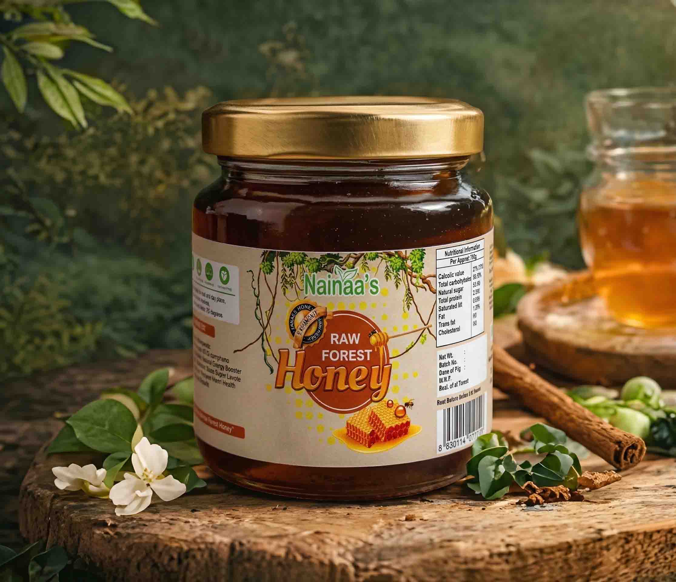 Nainaa’s Kitchen Raw Forest Honey is harvested from wild forest beehives, ensuring purity, authenticity, and nutrition in every drop. Rich in minerals and natural enzymes, it is a healthier alternative to refined sugar and can be used daily in teas, desserts, or cooking. Naturally crystallizing over time, it reflects its raw, unprocessed quality. Perfect for those who seek natural sweetness with added health benefits.